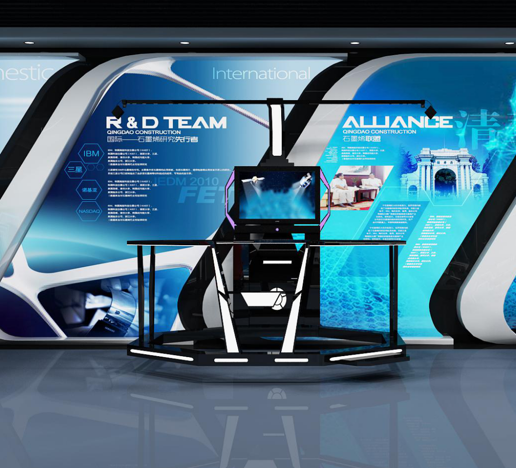 系统组成:VR头显、主机、VR软件、VR行走平台、显示屏。