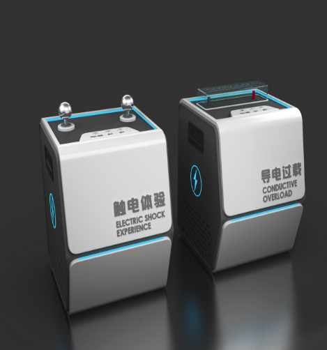 安全用电体验装置(触电体验&导电过载),是基于实体体感技术开发的安全培训设备。其中,触电体验装置用于触电模拟培训教育,导电过载体验装置用于电流过载体验的培训教育。