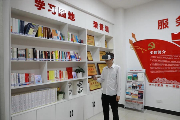 “红色VR党建”解决了党员学习形式单一等问题。戴上VR眼镜,就能身临其境地来到党史博物馆,浏览中共党史百科、瞻仰革命红船、学习中共一大到十九大会议精神、学习习近平新时代中国特色社会主义思想,体验红军爬雪山过草地、横渡大渡河的艰辛。追寻红色记忆,传承红色基因,这些诱人的红色知识和丰富的游戏体验感不仅吸引了党员,员工群众们也争先恐后地相继体验。